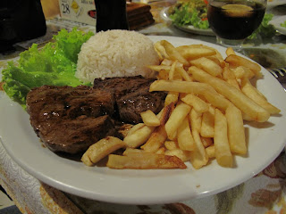 Descarregamos as motos e fomos jantar. A indicação do dono da pousada foi ótima, inclusive ligou para lá fazendo reservas pra nós.